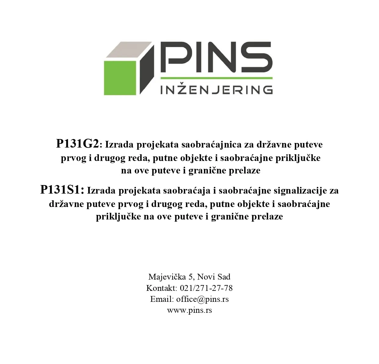 Postojećoj licenci P131S1 pridodali smo i licencu P131G2: Izrada projekata saobraćajnica za državne puteve I i II reda, putne objekte, saobraćajne priključke i granične prelaze.